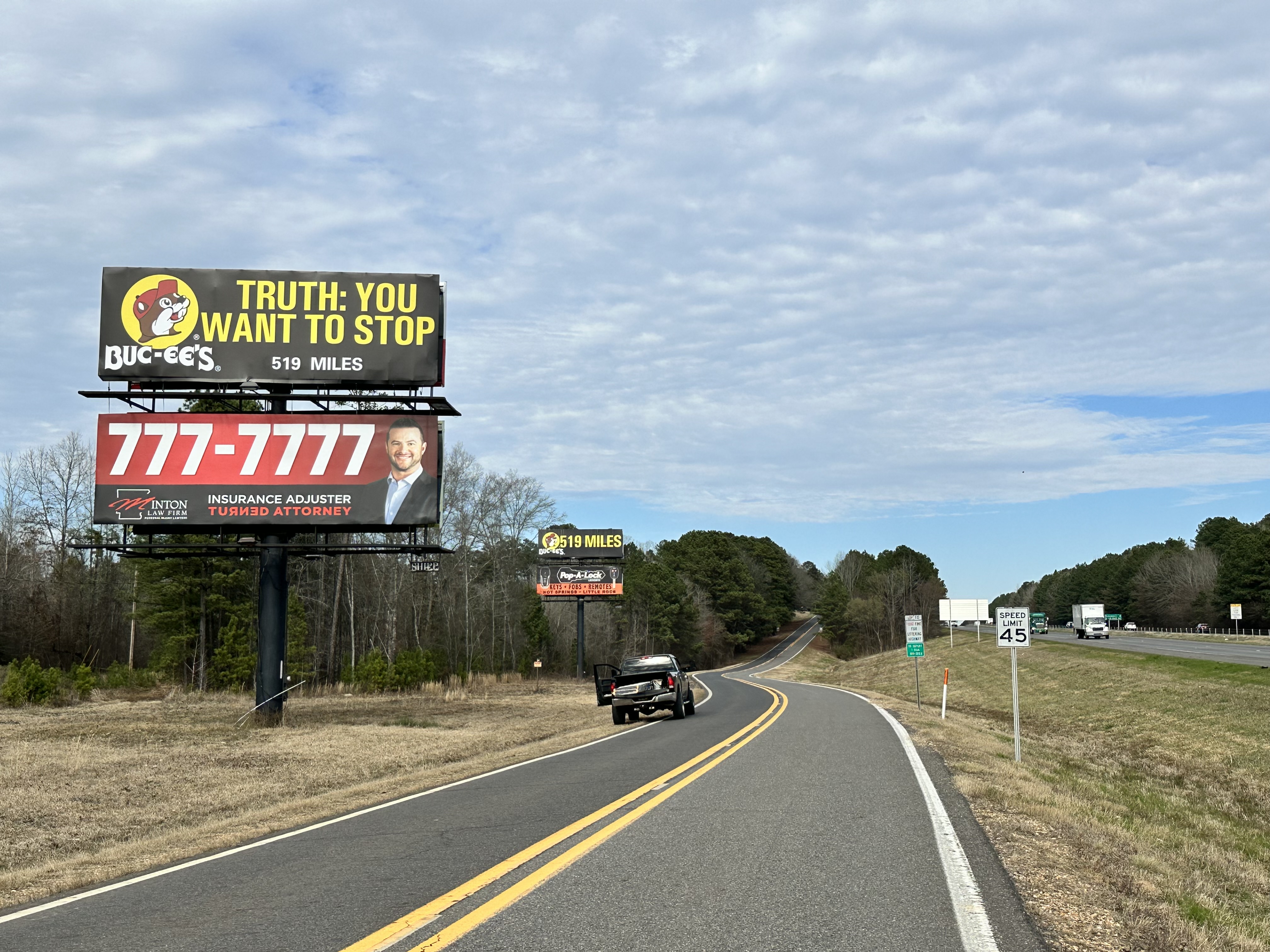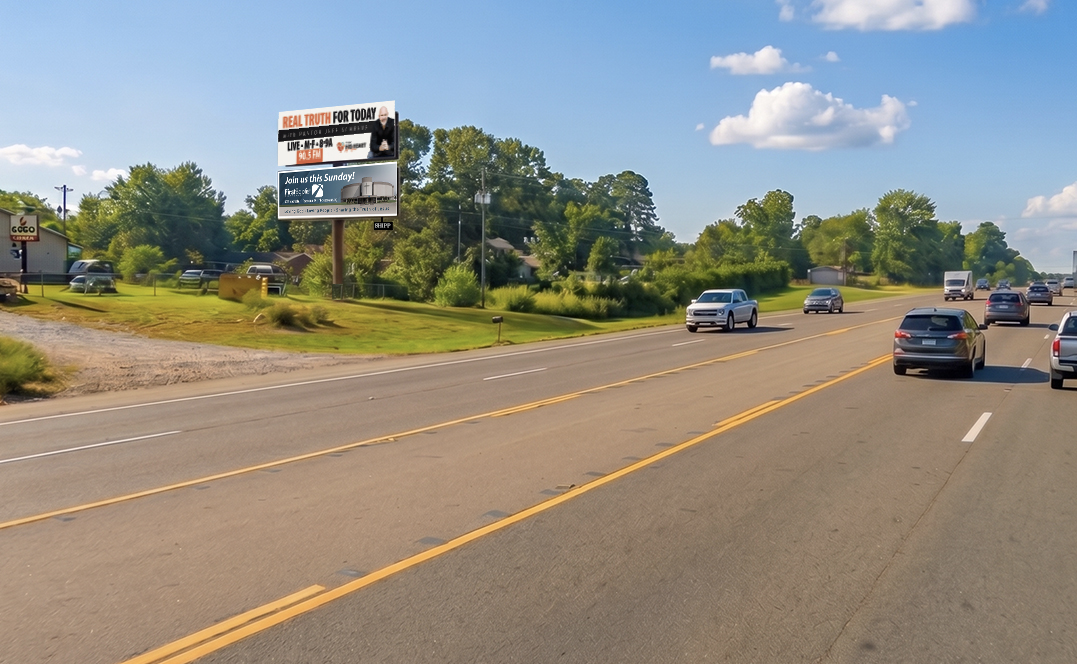 | Features | Show-stopping digital billboard on I-30 in Texarkana, AR — visible to eastbound traffic just past Stateline Ave. overpass. Jefferson Ave ¼ mile, I49 Exits ahead. |